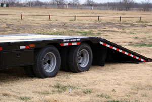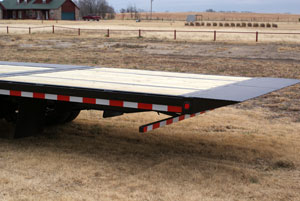 The ramps on the Red Rhino™ come standard with load equalizers and are spring assisted. Many gooseneck flatbed manufacturers do not provide these stabilizers. Without them, when loading equipment, you would not only pick up the rear end of your truck, but you would add longitude stress to your main beams.